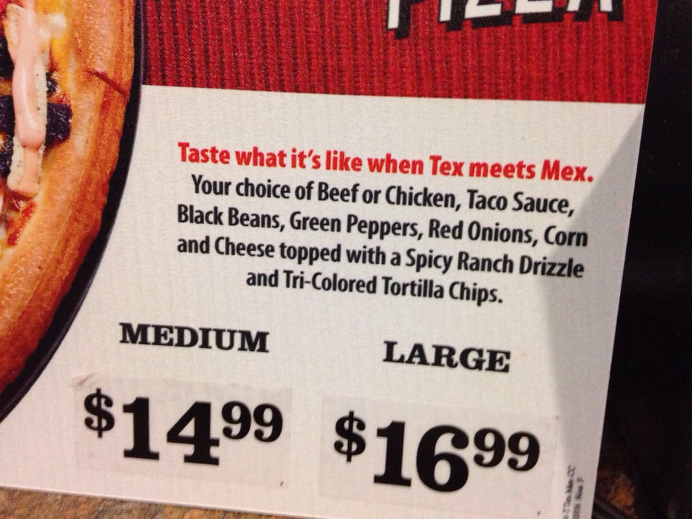 Taco Sauce, Beef, Lettuce, Onions, Tomatoes, Cheddar & Mozzarella Cheese, Extra Cheddar